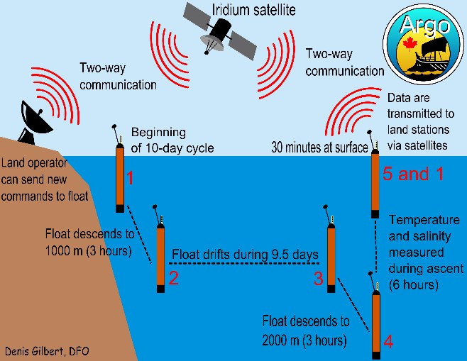 Plus de 20 pays participent au projet. Ils coopèrent tous au déploiement, à la surveillance et à l'entretien d'une flotte de quelque 3 000 profileurs dérivants sophistiqués. Les flotteurs dérivent, s'enfoncent à des profondeurs préprogrammées pour des durées préétablies et remontent à la surface, prenant une variété de mesures importantes lors de la remontée.